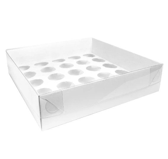 CAIXA TRANSPORTE PARA 25 DOCES STANDART BRANCA COM BERÇO CURIFEST