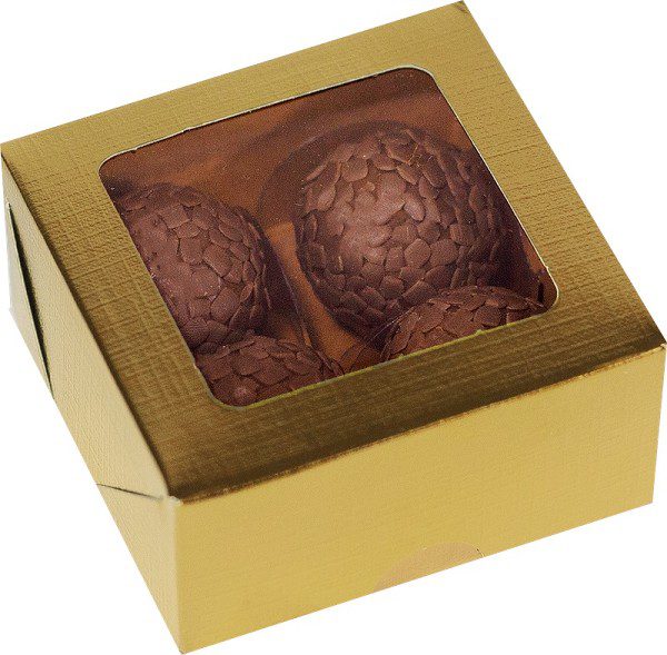 CAIXA IDEIA DOURADA COM VISOR PARA 4 DOCES 8X8X4CM CÓD.4668