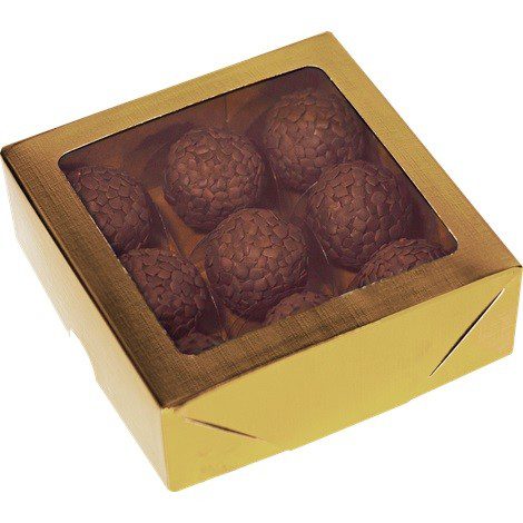 CAIXA IDEIA DOURADA COM VISOR PARA 9 DOCES 12X12X4CM CÓD.4671