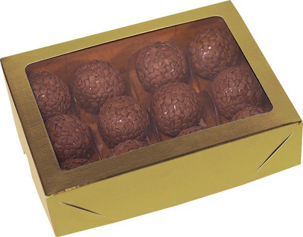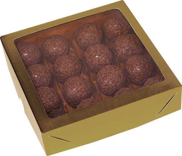 CAIXA IDEIA DOURADA COM VISOR PARA 12 DOCES 16X12X4CM CÓD.4673