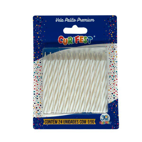 VELA PALITO GIGANTE BRANCA E DOURADA 17CM C/6UN