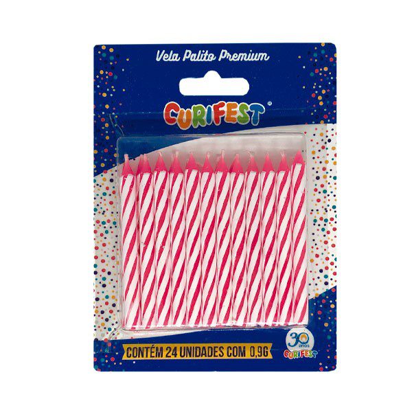 VELA PALITO ROSA E BRANCA 15CM C/6UN SILVER PLASTIC