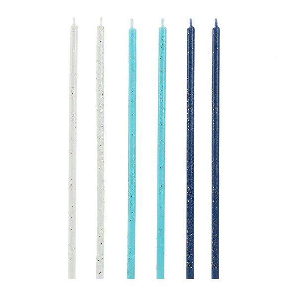VELA PALITO AZUL E BRANCA 15CM C/6UN SILVER PLASTIC