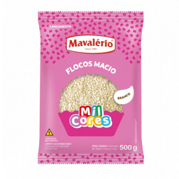 GRANULADO EM FLOCOS MACIO SABOR CHOCOLATE BRANCO 500G MAVALÉRIO